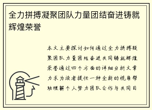 本文主要探讨如何通过全力拼搏,凝聚团队力量,团结奋进,共同铸就辉煌荣誉。通过四个方面的详细分析,文章力求为读者提供一种全新的视角,帮助理解个人努力、团队合作与共同目标的重要性。文章首先从“全力拼搏”的...