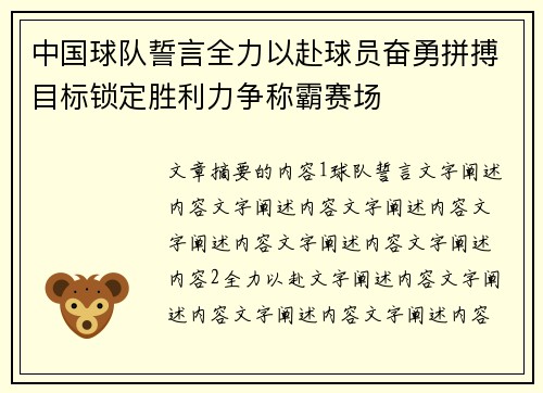 文章摘要的内容1、球队誓言文字阐述内容文字阐述内容文字阐述内容文字阐述内容文字阐述内容文字阐述内容2、全力以赴文字阐述内容文字阐述内容文字阐述内容文字阐述内容文字阐述内容文字阐述内容3、球员奋勇拼搏文...